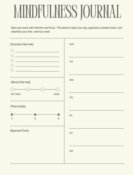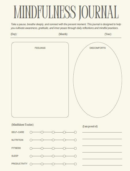 • 1 x Mindfulness Journal 2-page Template (US Letter PDF)