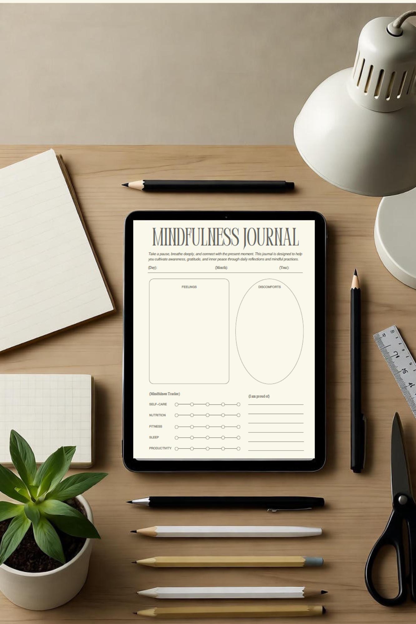 Mindfulness Journal Printable | Minimalist Daily Template Self Care Digital Organizer | Productivity Planner Instant Download Wellness PDF