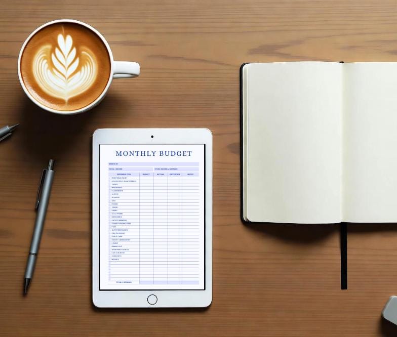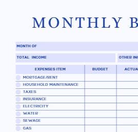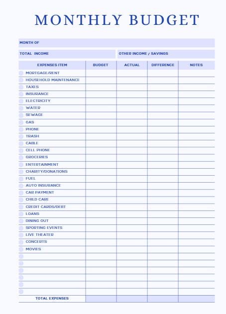 Blue Monthly Budget Planner Printable | Expense Tracker Template | Digital Finance Organizer | Instant Download PDF Spreadsheet