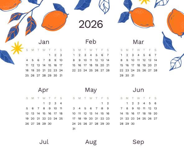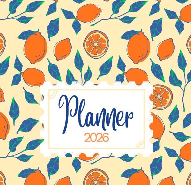 Orange & Green Illustrated Annual Planner Printable | Italian Orange Drinks Theme | Yearly Organizer | Digital Instant Download PDF