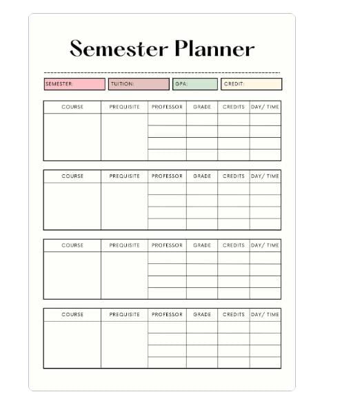 • 1 x Printable Semester Planner Sheet