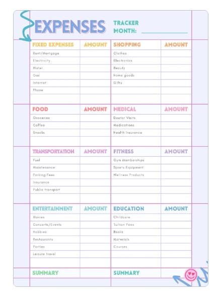 Colorful Monthly Budget Planner Printable | Expense Tracker Template | Digital Finance Organizer | Instant Download PDF Spreadsheet