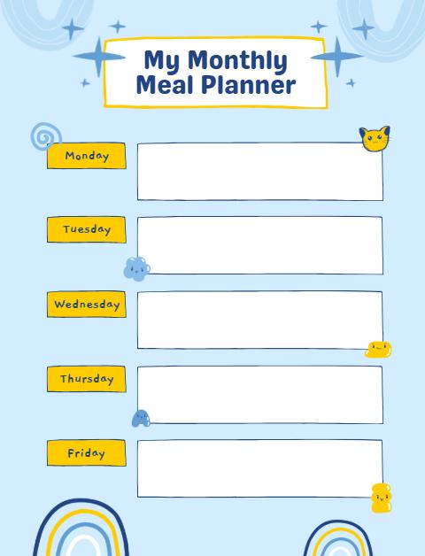 Weekly Meal Planner Printable | Healthy Food Menu Template | Blue and Yellow Illustrated Planner | Instant Download PDF Sheet